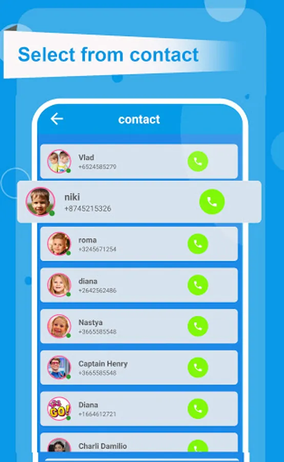 2. Select the member you want to call audio or video (diana , nikita , roma , nastya ... )