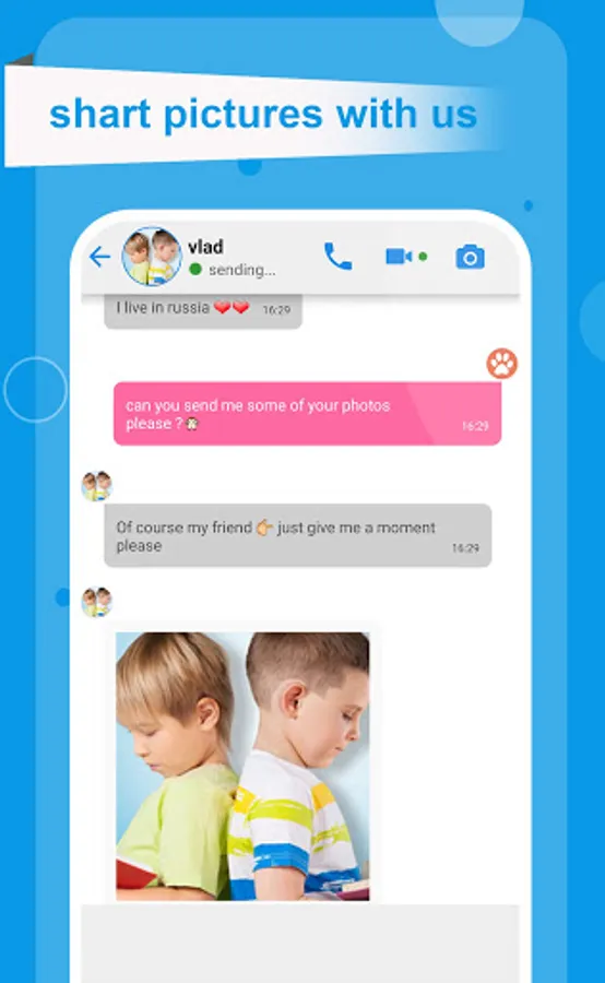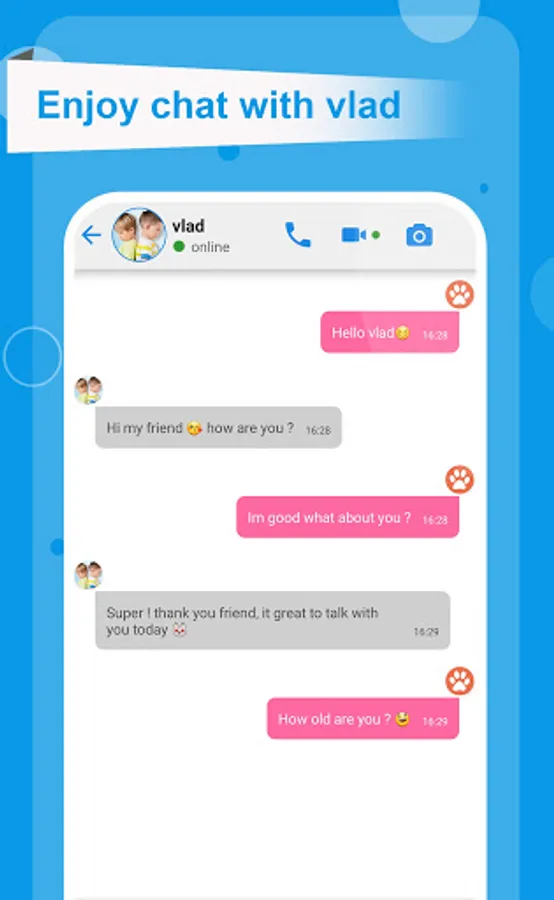 4. join the chat to start calling with vlad or make a chat discussion with your contact vlad to ask her some question and sending photo & more !