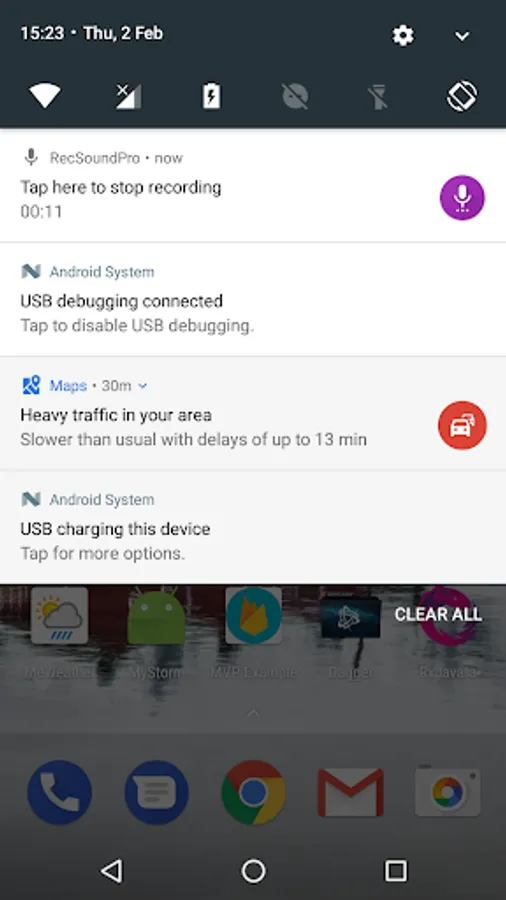* Displays the recording status in the notification bar.