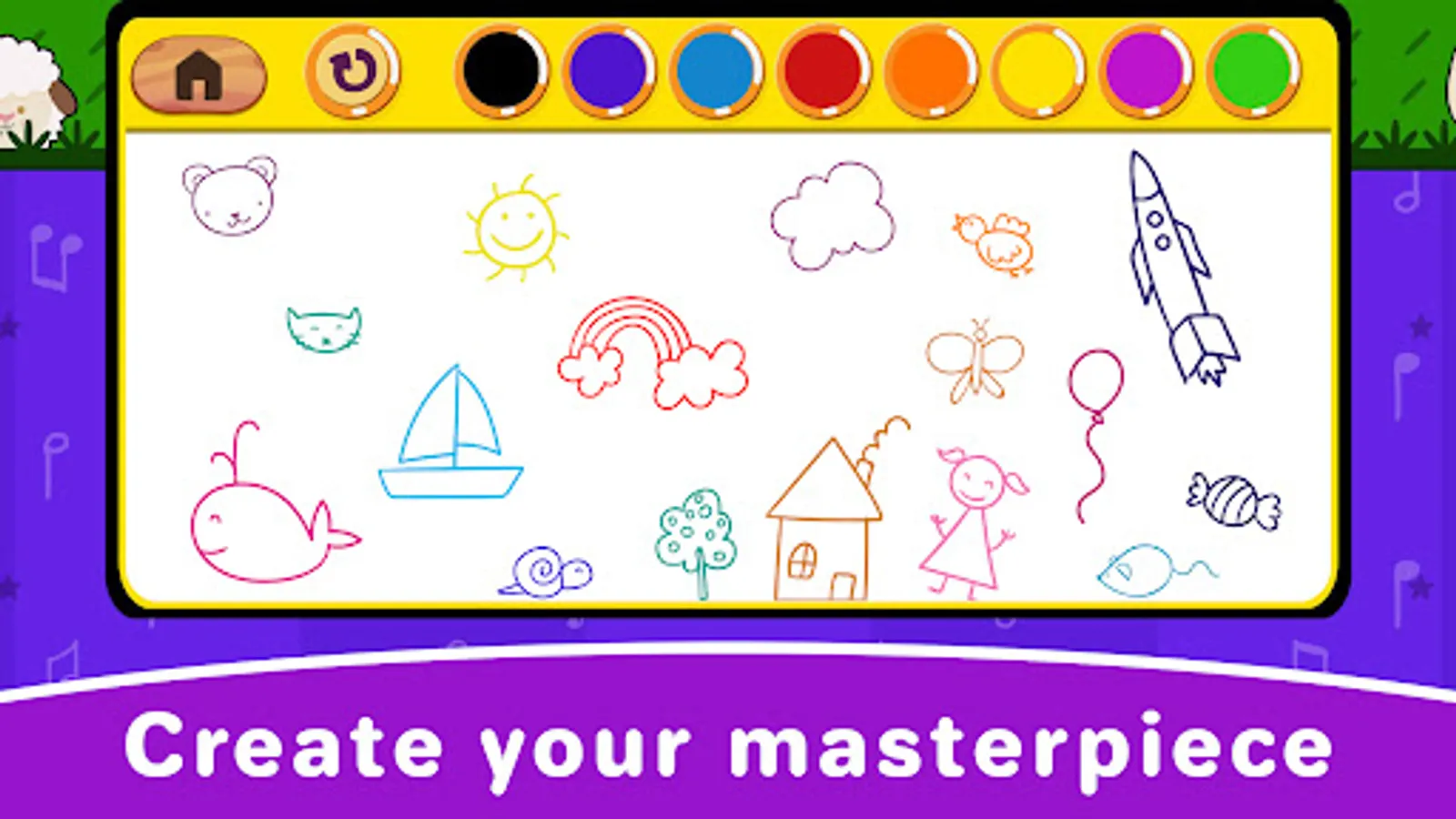 Your child can let their creativity run wild with our drawing board and create their own masterpieces. We've also included a selection of songs for kids, nursery rhymes, and lullabies that your child is sure to love.