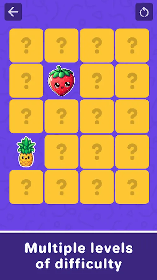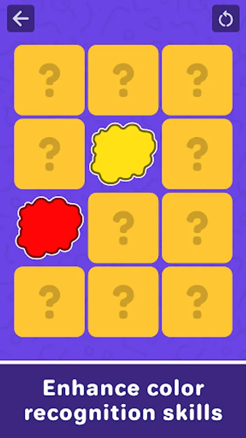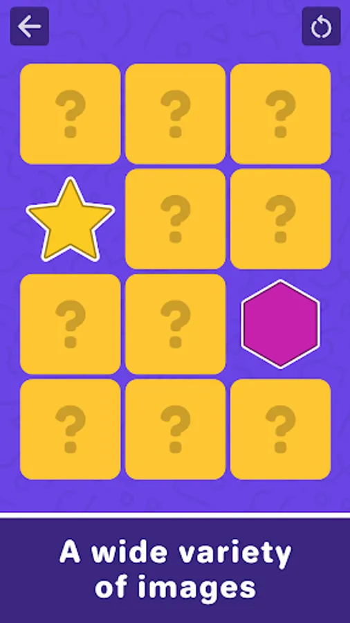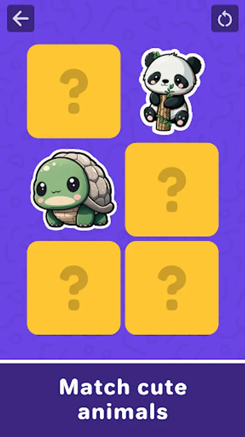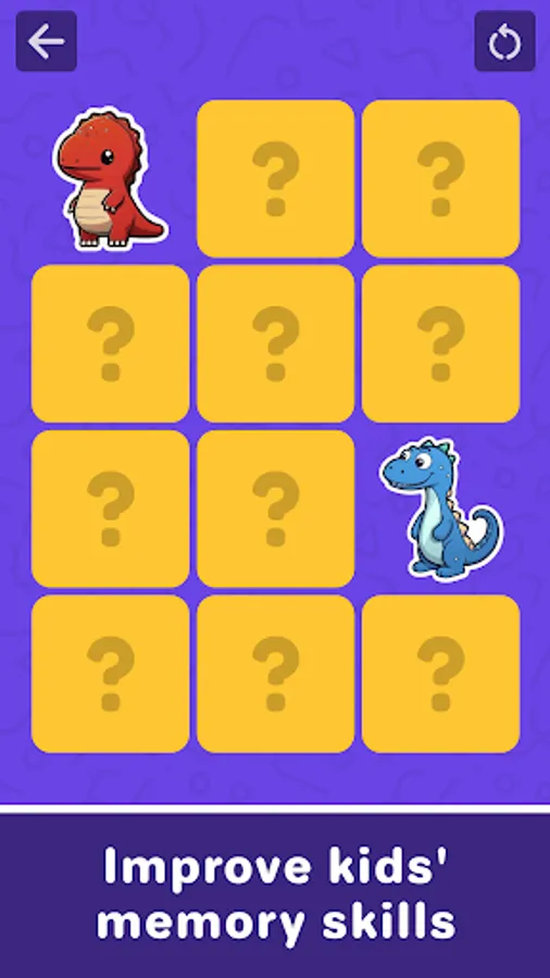 Educational memory game for kids that helps children improve their memory and cognitive skills. With a variety of colorful images featuring animals, dinosaurs, geometric shapes, fruits, and vegetables, children can have fun while also learning about different animals and colors.
