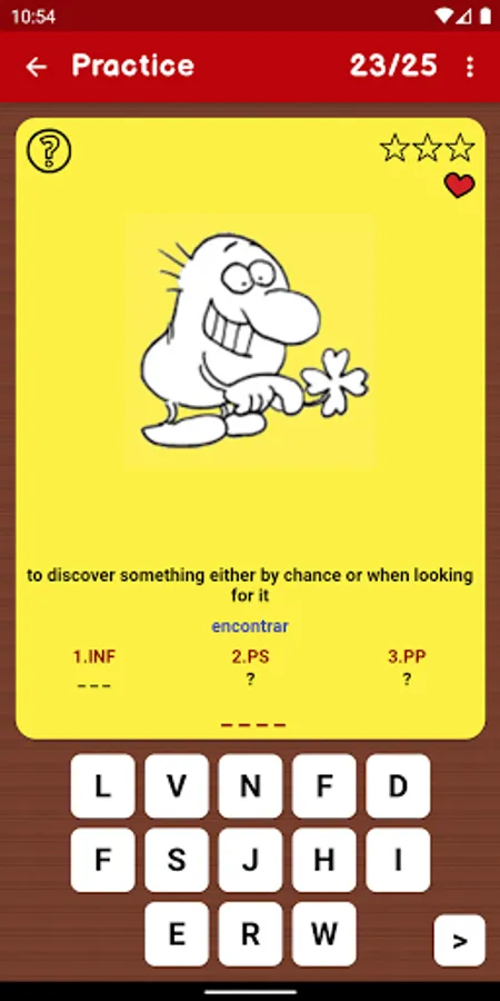 The application "Color Verbs Pro" provides a list of 200 irregular verbs of the English language. Each verb contains examples (e.g. definitions, sentences, pictures, audio pronunciation and phonetic transcriptions). There is a possibility to highlight the verbs that you consider as more difficult, which means that you can identify them easily later on.
