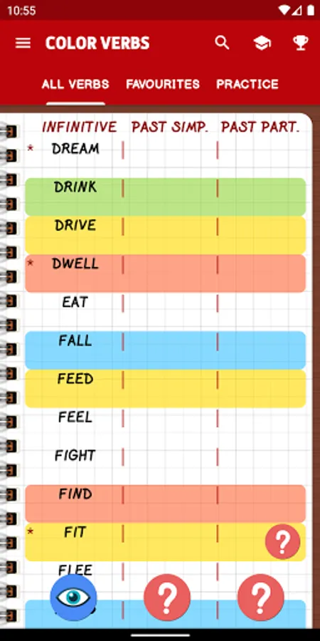 Do you know all past forms of English irregular verbs? ColorVerbs will help you to learn, review, and refresh your knowledge about the past forms of English irregular verbs.