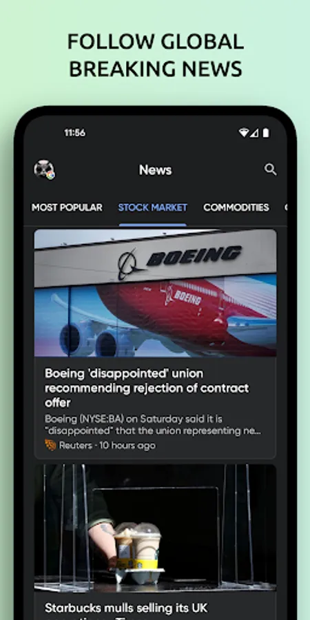 Easily follow your stocks, indices, futures from the US, EU, and Asian markets. View stocks quotes and daily performance in customizable portfolios, tap any ticker to see an interactive chart and detailed information. Read the latest investment and business news from top publications around the world.