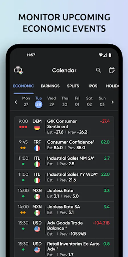 Check out the economic calendar. See what will impact the market this week. Sort events by importance, country and view historical data and forecasts.