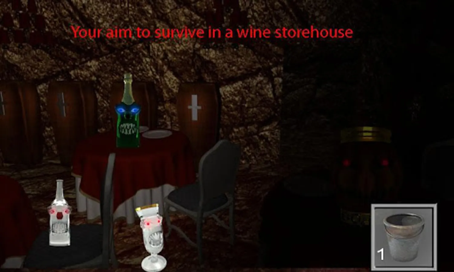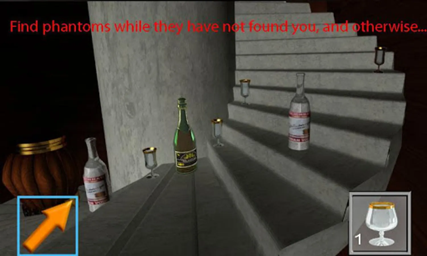 Your aim to survive in a wine storehouse, use stock in a right bottom corner of the screen. Use it only when you have noticed a phantom which hides in spirits.
