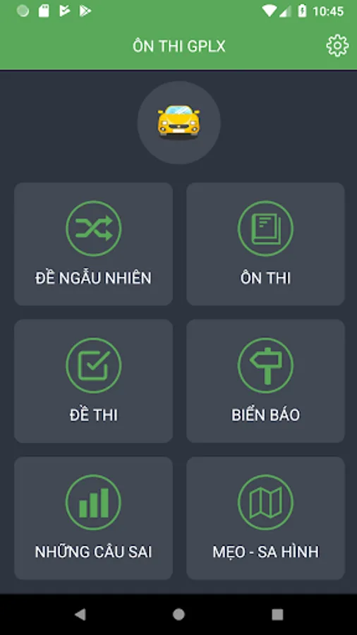 - With the "Review" section, the application divided 450 questions into 7 main topics: Concepts and rules, transportation, culture and ethics, driving techniques, construction and repair, signs, and finally sa picture.