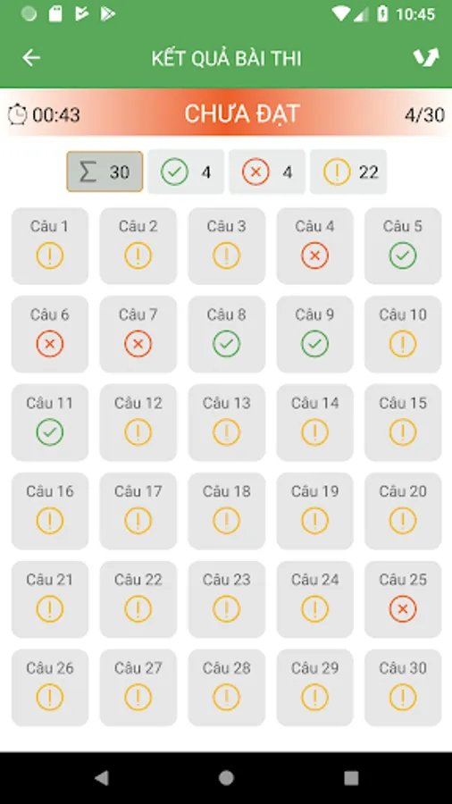 - In addition, the application also has the function to save the data of the test attempts, save the wrong answers, help users avoid having to make mistakes again.