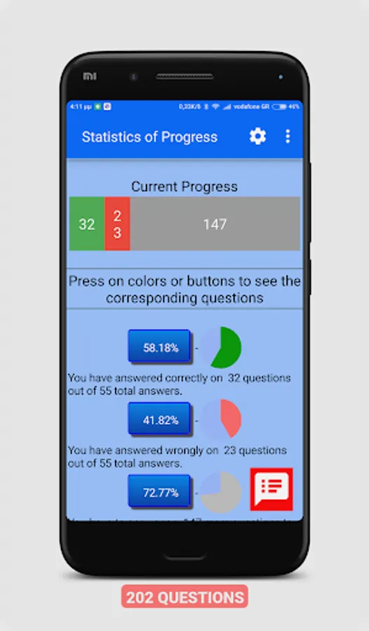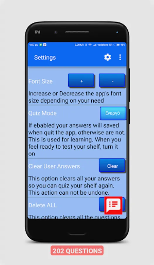 - Your answers are saved when exit the app and if "Quiz Mode" in settings is ON or FAB Icon is Red.