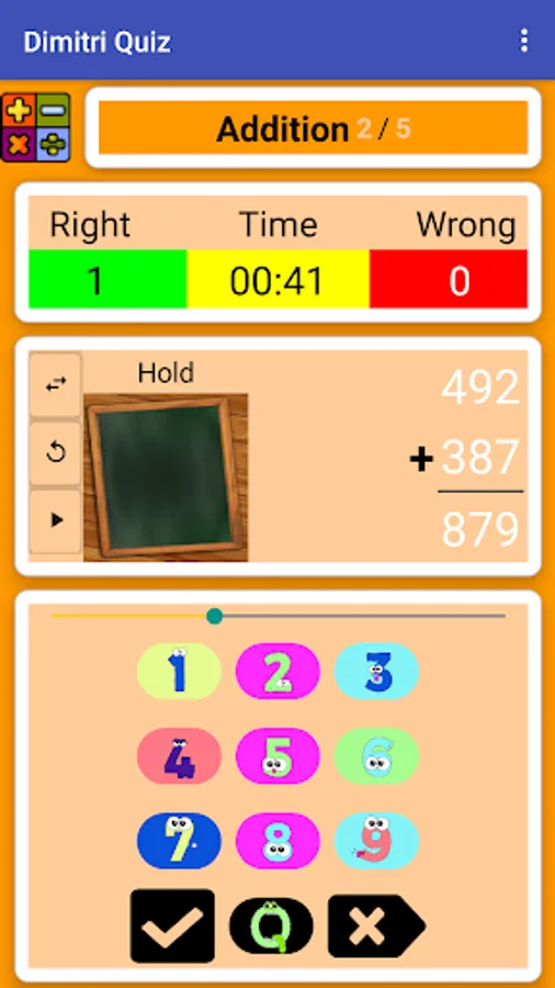 A Quiz for Elementary students, with the 4 basic operations of math in a beautiful environment, attractive to children, with no ads. It offers full customization in the choice of number range for each operation in order to suit every age and level of education.
