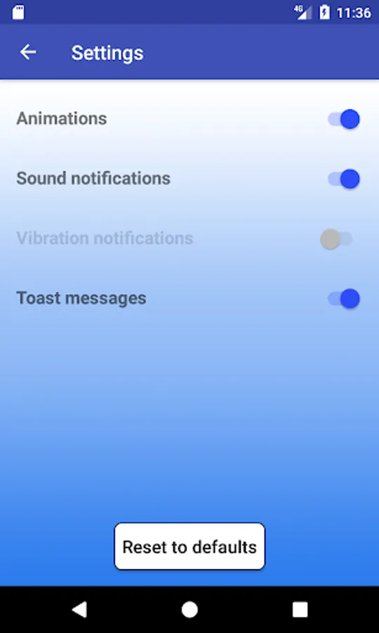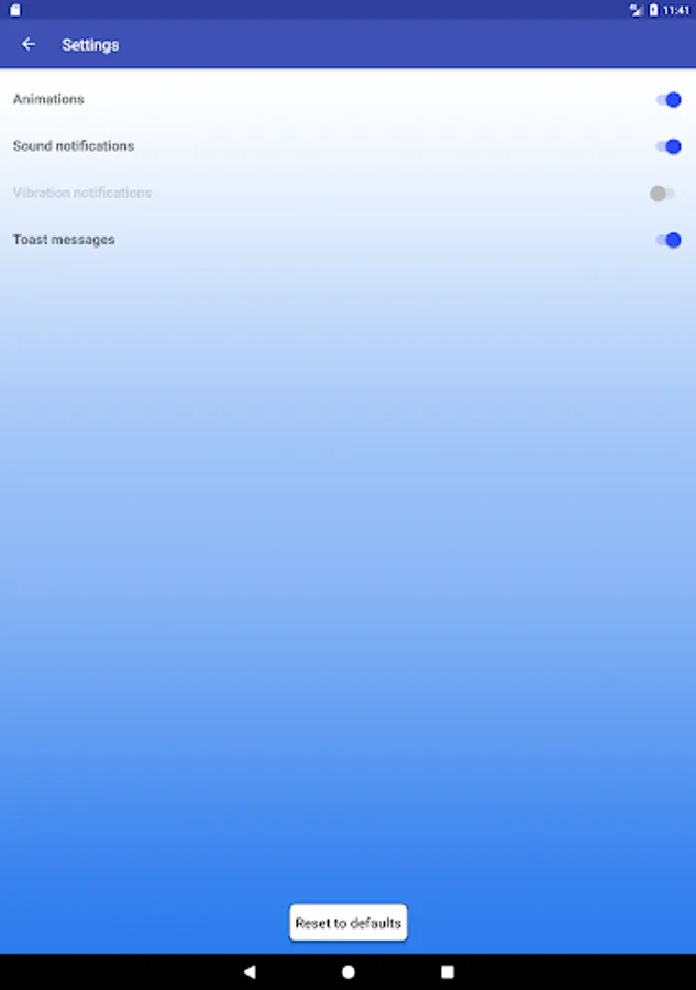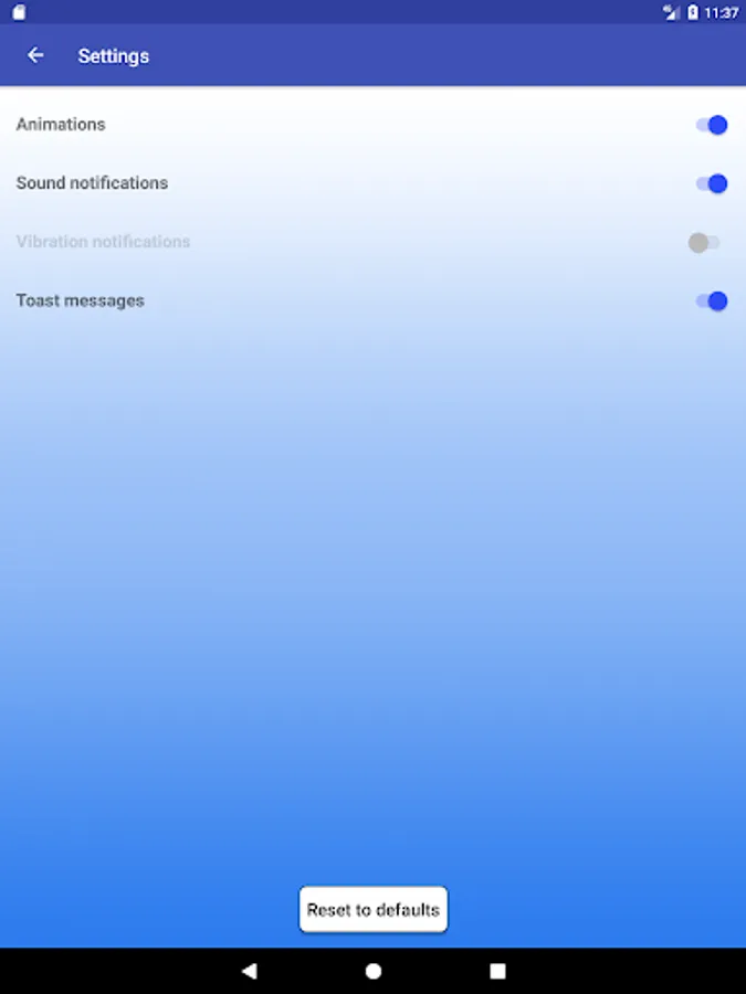 ► If you want to enable or disable sound and vibration notifications, animations and Toast messages, just make a stop at the Settings view and do as you please.