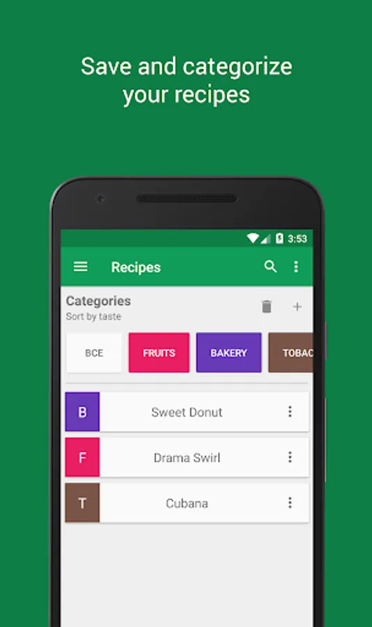 - Add an unlimited number of flavors to the recipe as a percentage or drops;