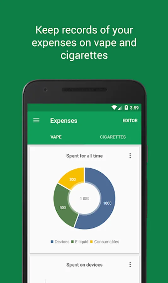 - Keep track of how many days you did not smoke, amount of not spent money and track your expenses on vape. The ability to place the widget with statistics on the homescreen