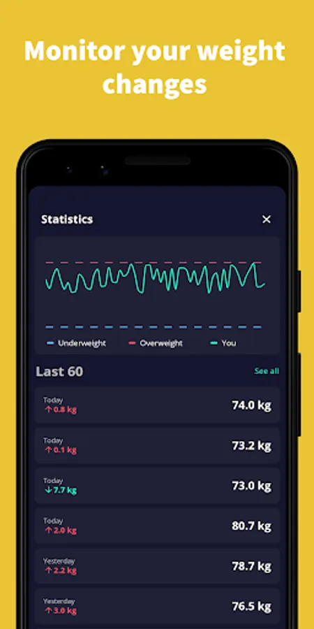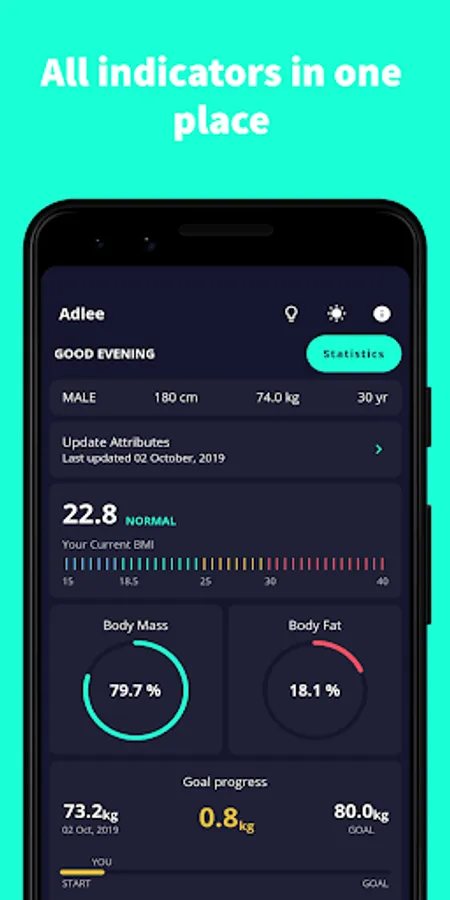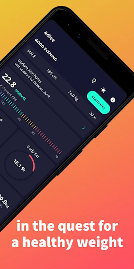 Adlee - BMI Weight Tracker mobile app is your companion in a quest for a healthy weight. Log your daily weight changes and monitor your BMI score. Easily check how far you are from achieving a healthy weight.