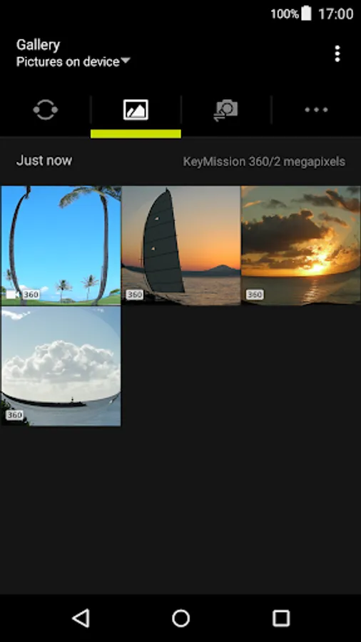 - When connected to a KeyMission 360, touch operations can be used to move the viewpoint freely and view the image at any location.