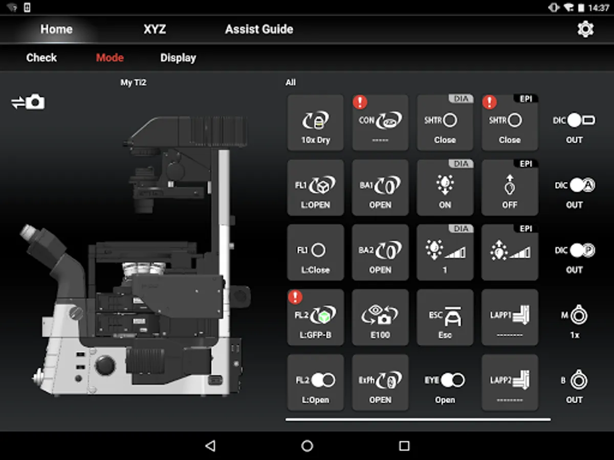 This application is used to make settings for the Inverted Research Microscope ECLIPSE Ti2-E/Ti2-A, control the Ti2-E, display the Ti2-A status, and display the Assist Guide.