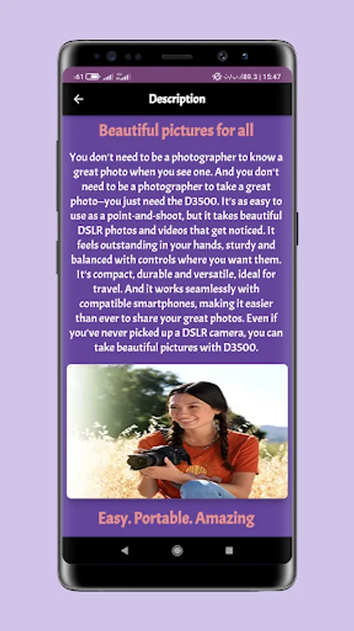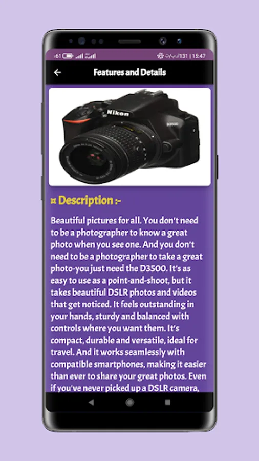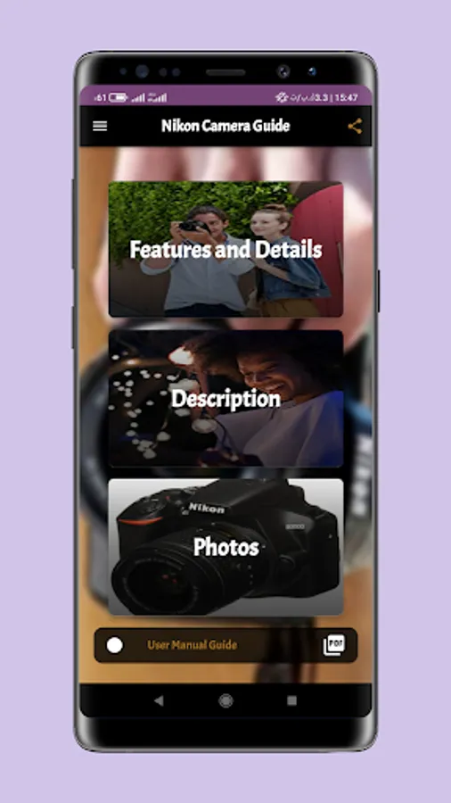 + Contains many pictures to see all designs of nikon camera guide app .