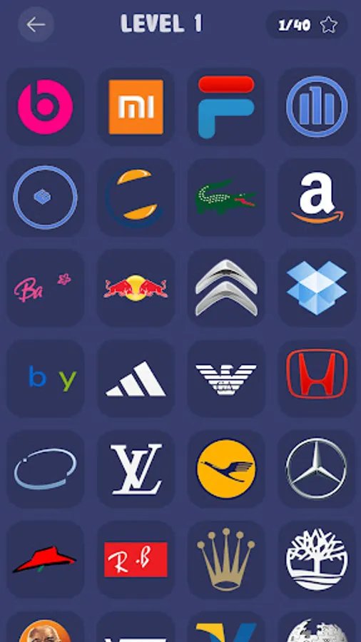 - Logos are seperated in levels. Each level contains 40 hidden logos.