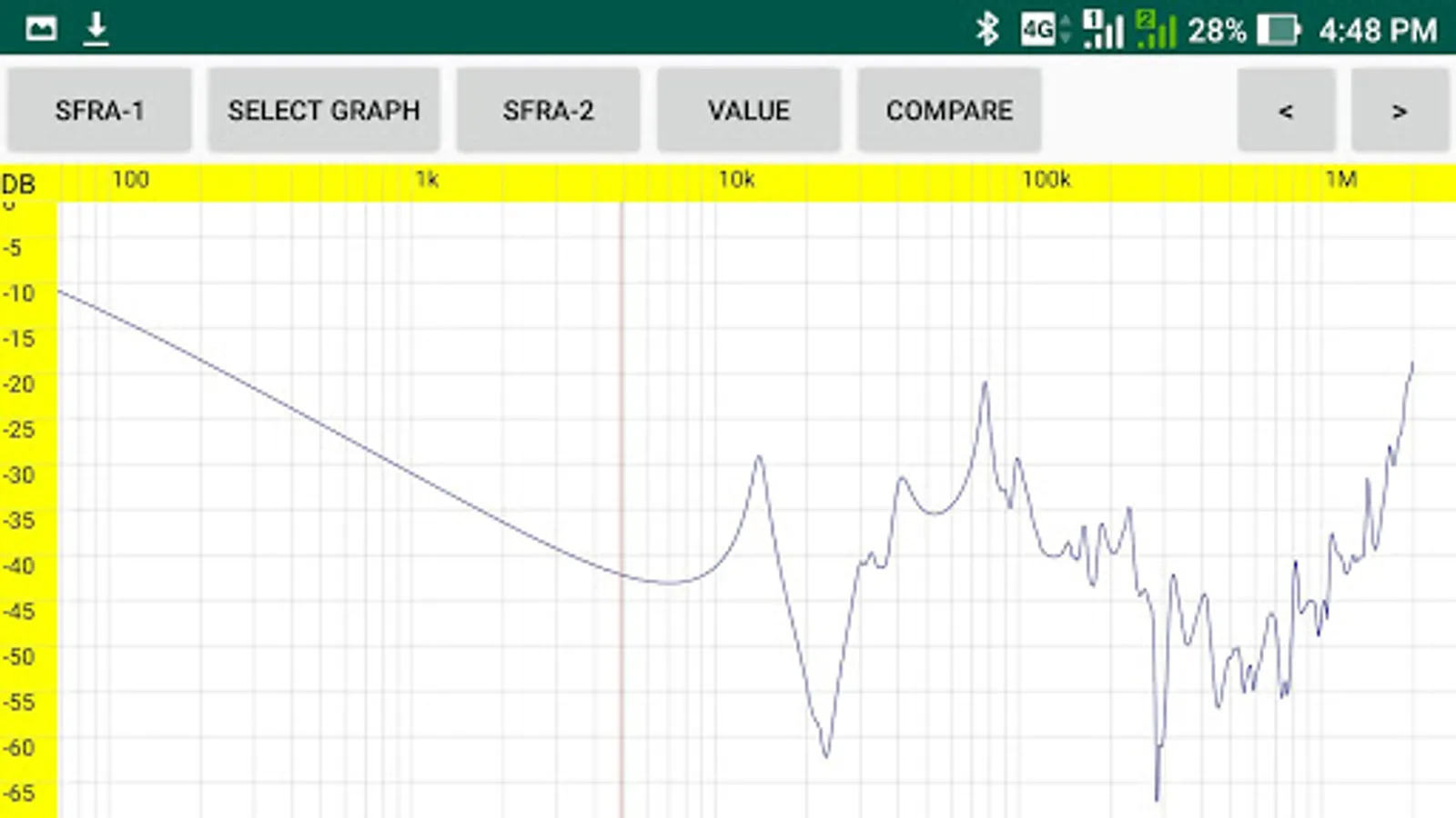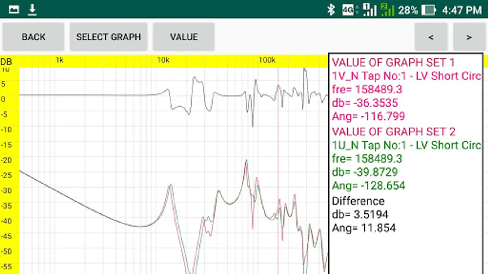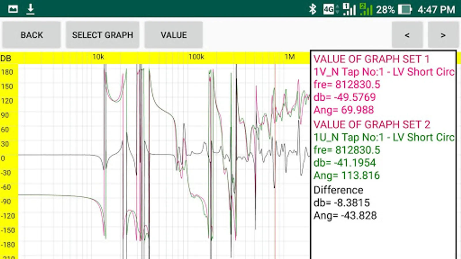 Sweep frequency response analysis (SFRA) is a method to evaluate the mechanical integrity of core, windings and clamping structures within power transformers by measuring their electrical transfer functions over a wide frequency range. Using this app, .sfra or .frax file is analyzed. At different points of frequency, dB value and ang value can be compared with different graphs.