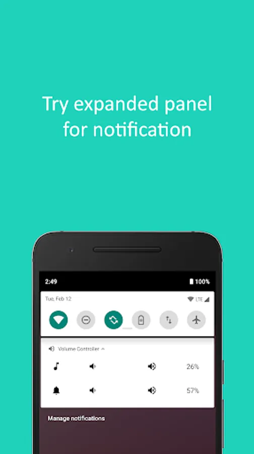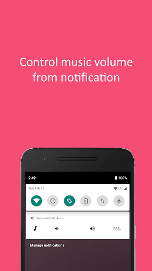 The notification with audio controls will help you to adjust music volume from the notifications drawer: just tap volume up/down or mute button. Besides this mode allows you to control global notifications volume by using an expanded control panel.