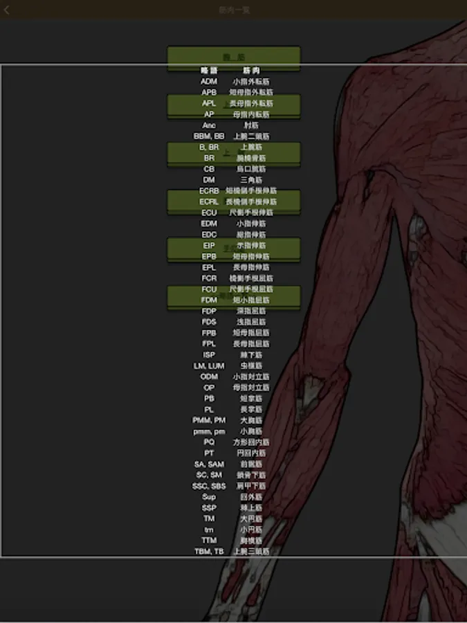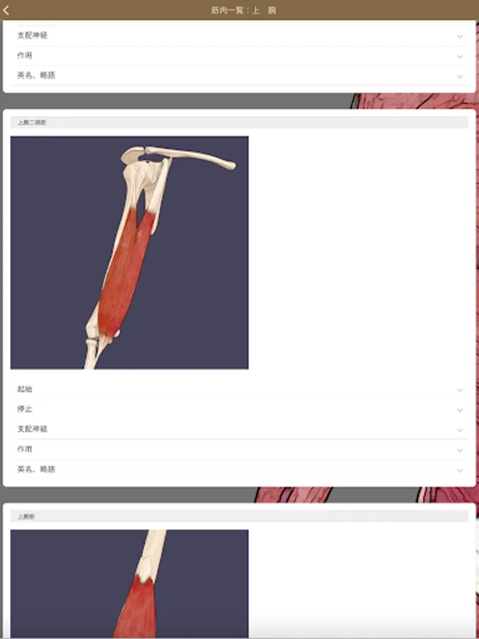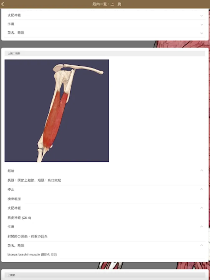 -You can learn the name, start, stop, innervation, action, English name, and abbreviation of each muscle of the upper limb band with illustrations. Ideal as a companion when learning anatomy.