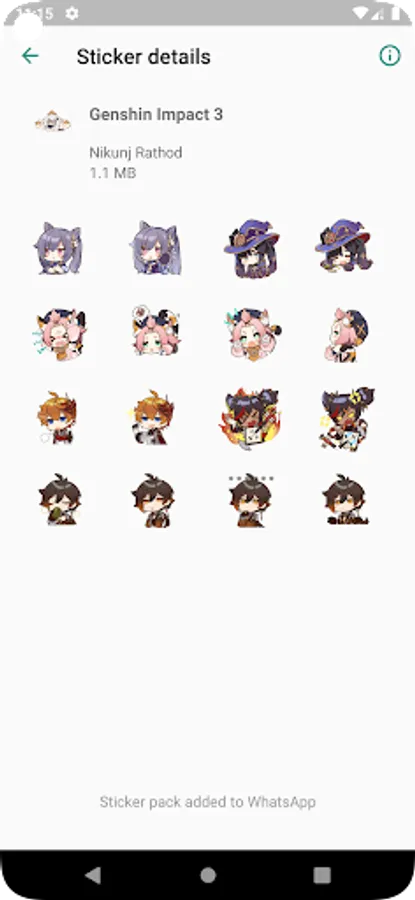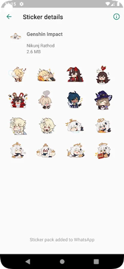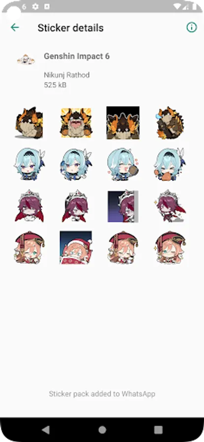 You can easily and absolutely free diversify your stickers for WhatsApp with a few clicks. Genshin stickers range from all kinds of funny and cute emojis. Send your new stickers to any WhatsApp chat.