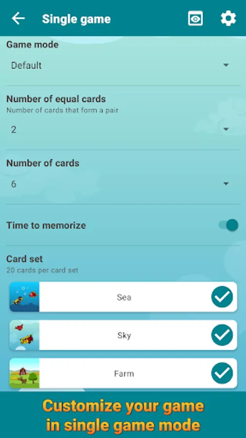 - Play this memory game in different modes, including adventure mode, single game, time game, and multiplayer.