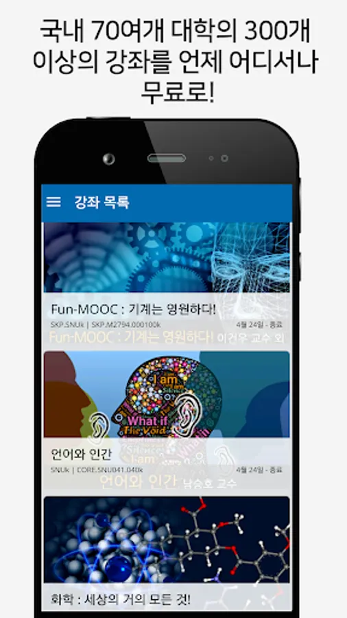 As of 2018, K-MOOC provides more than 300 courses from prestigious 70 universities such as Seoul National University and KAIST, and is open to all.