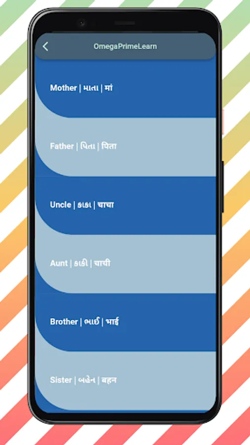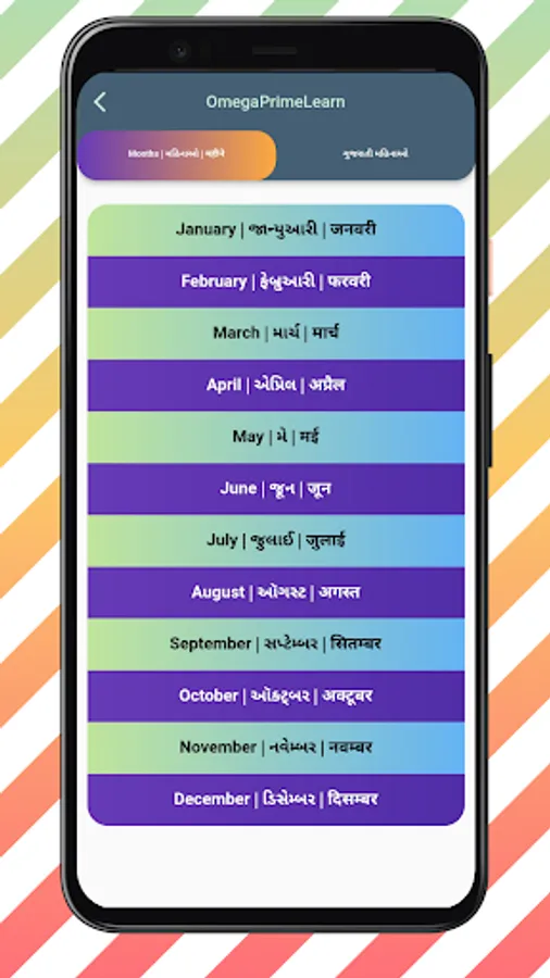 Omega Prime Learn is a way to learn English, Gujarati and Hindi for children or first time learners. This application contains various topics such as English alphabet, Gujarati alphabet,Hindi alphabet, numbers, Gujarati months, English months, Days of week and shows different seasons, conversions, relatives, domestic animals, wild animals, birds, aquatic animals, insects, flowers, fruits, vegetables, vehicles, musical instruments, shapes, colors, planets and directions. You can draw alphabets and numbers on your screen.