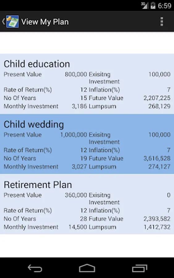 Goal Planner will help you to plan for any financial goals like Child Education or Child Marriage. It calculates the monthly investment required for achieving the goal. You can give the goal present value, No of Years remain, Inflation, rate of returns on your investments.
