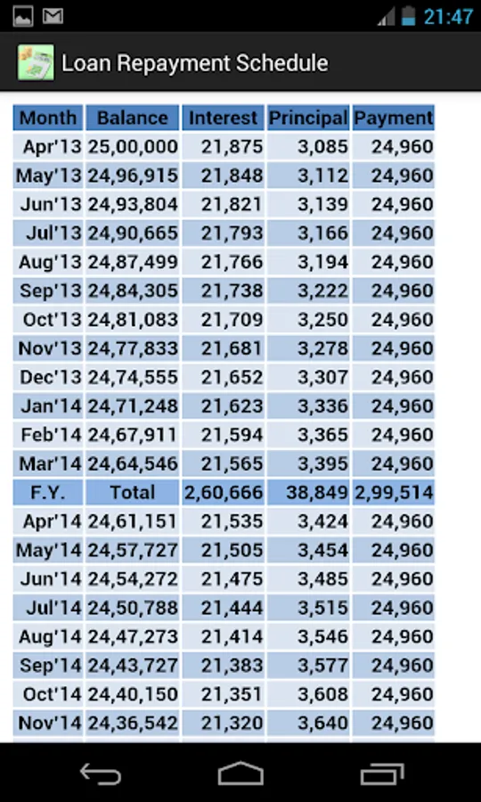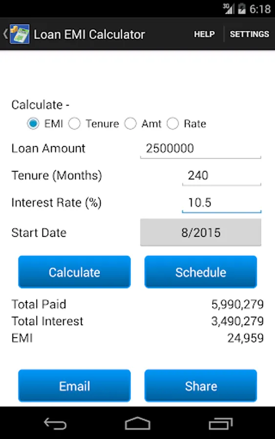 Calculate EMI (Equated monthly Installment) of home Loan, Car Loan or Personal Loan. It also shows loan repayment schedule with total interest paid and total principal amount paid at the end of every financial year.