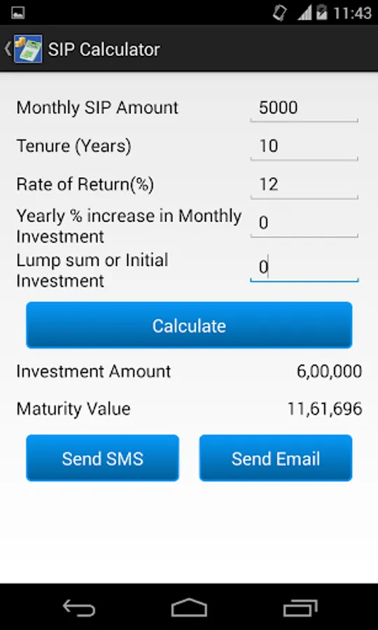 Example: If you want to start an SIP of Rs 5,000 per month and you expect your investments will return 12%, then in 10 years you will generate 11, 50,193 compounded yearly.