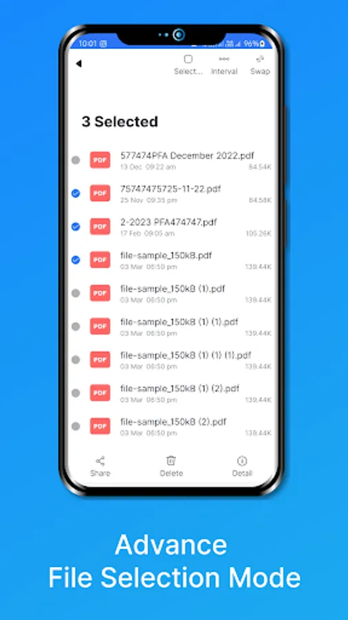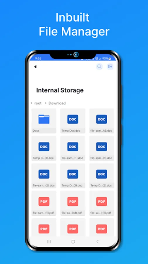 2.1 Internal Storage: It is inbuilt File Manager where you can find all the necessary functionality File Manager has. It include PDF Viewer where you can preview or view PDF files. It include Image Viewer where you can preview or view Image files. It has different types of Views and Sort technique where you can change it for your selected one and saved it. For selection of files and folder inbuilt file manager provide three types of selection technique such as Swap, Interval and Select All. You can share, delete, view single or multiple file details and rename selected files.