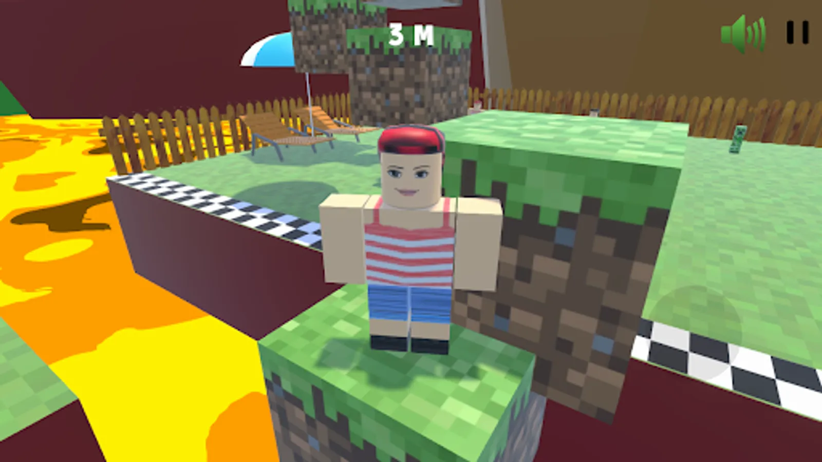 Select from three super fun characters: male blocky, female blocky, and the creeper.