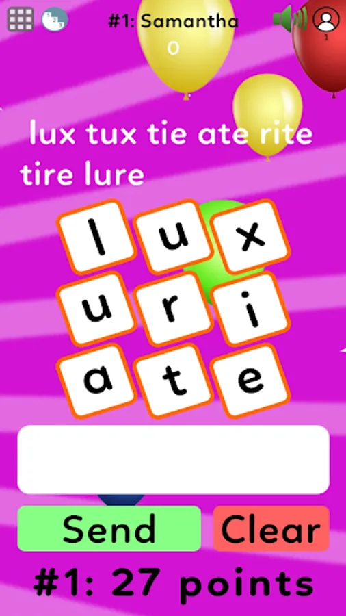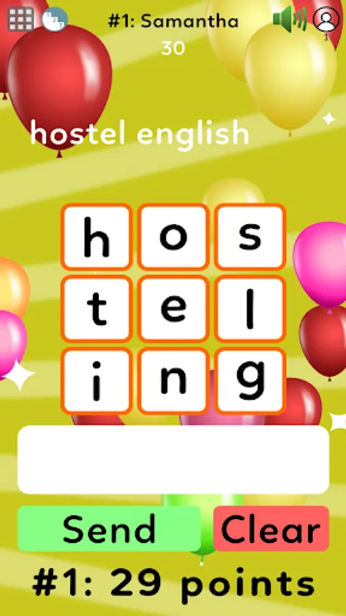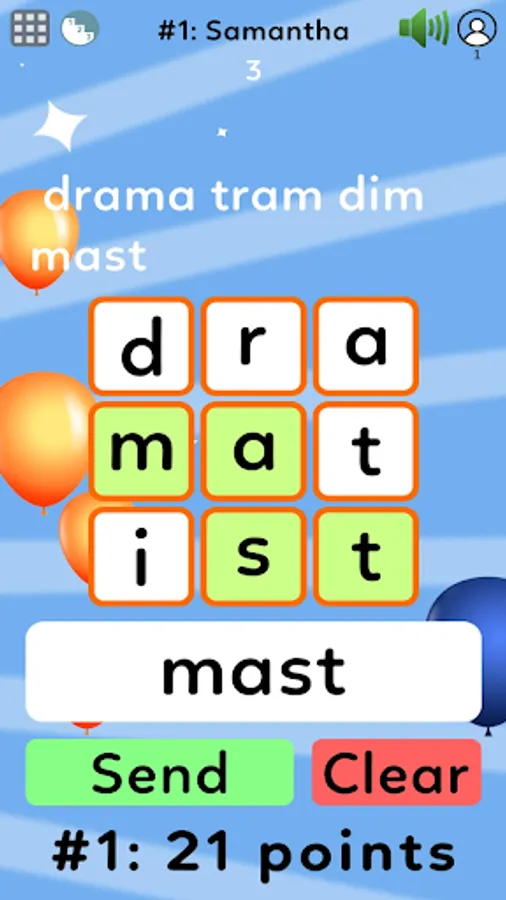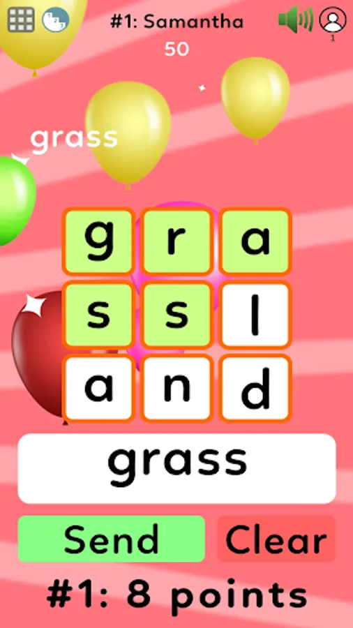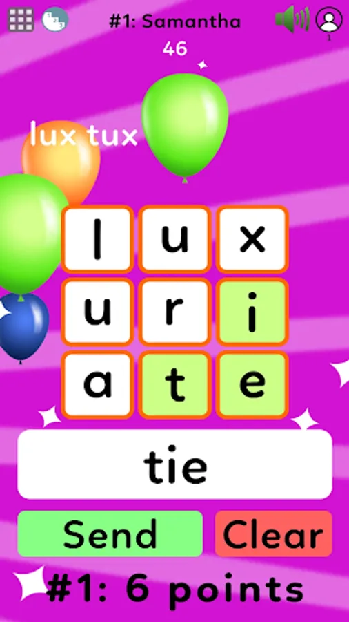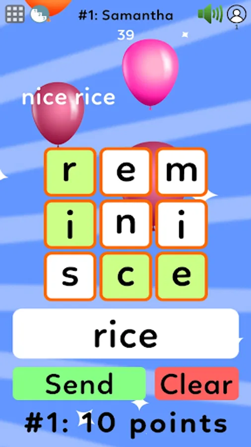 Earn points for each correct word you submit. The more letters in a word, the more points you earn.