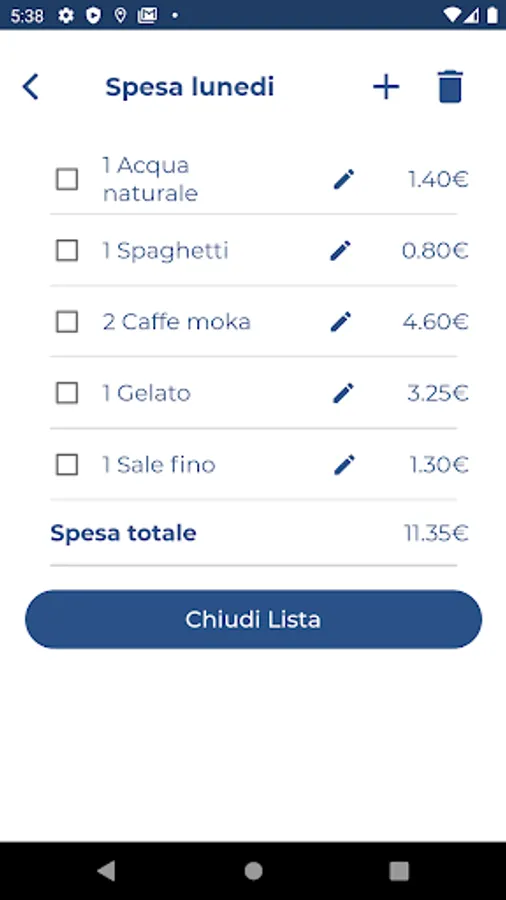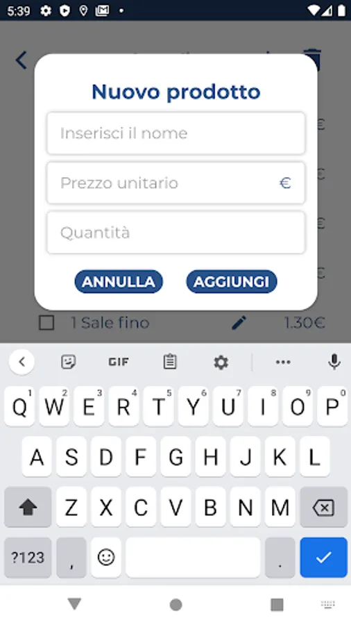 You can add a new product to each shopping list by specifying the name, quantity and unit price; in addition, the barcode scan function is provided for automatic product recognition so as to speed up its insertion in the list.