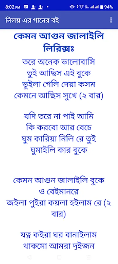 আমাদের এই অ্যাপে বাংলা আতিফ আহাম্মেদ নিলয়ের সকল আবেগি কস্টের গানের বই উপভোগ করতে পারবেন।