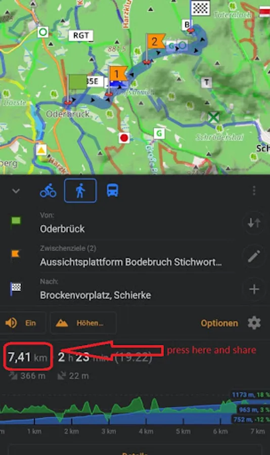 + tap on map location (google maps or OSMAnd+), or ceate a route with interim goals