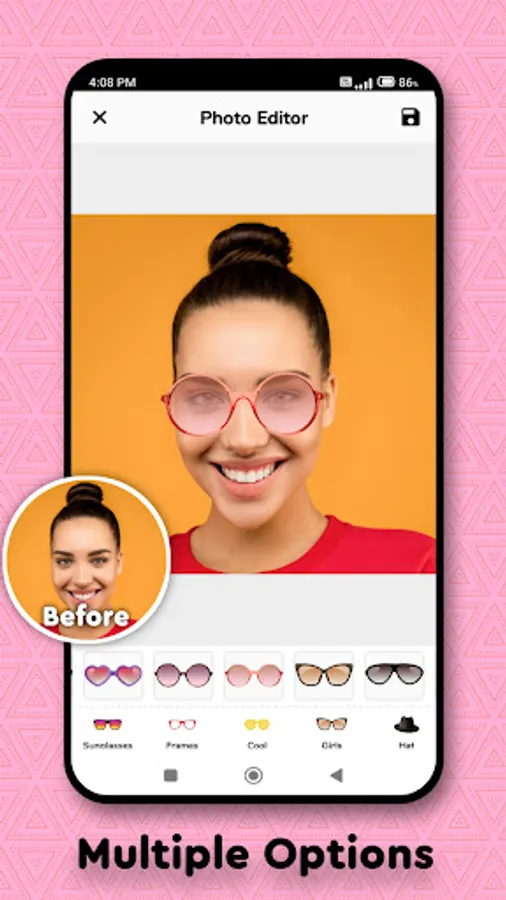 Try our Sunglasses Photo Editor app to apply awesome Glasses 🕶️ on your photo 😎 in less than 1 minute.