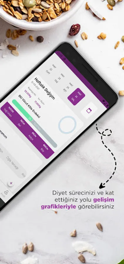 You can communicate with your dietician thanks to the water consumption tracking, meal reminder, active notification feature, food consumption tracking, physical activity tracking, requesting an appointment from the dietician, the report section where you can see the changes in waist, hip, fat and weight ratios graphically, and the instant correspondence section where you can stay in touch with the dietician. .