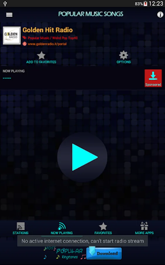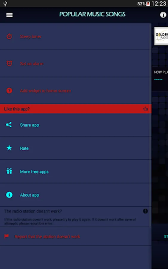 Popular Music Songs is radio online free app that has all those new popular songs that everyone likes. This radio live app is made especially for those who like to listen to popular songs on the radio. Web radio gives you the opportunity to always be close to the most popular music. Be sure that you will hear you favorite popular song on this internet radio.