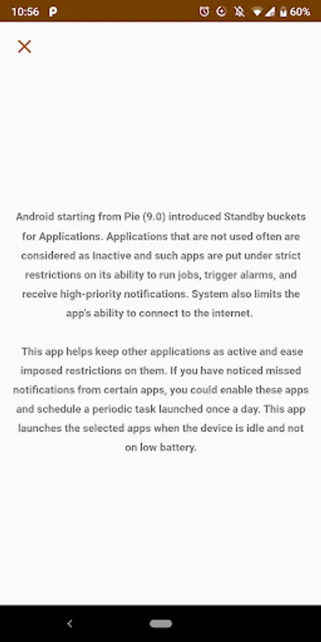 App Petter was designed to ease background restrictions on selected apps imposed by Android starting from Pie. As the name suggests, it pets other apps on a scheduled basis to ensure restrictions are eased on selected apps. Type of restrictions are documented at https://developer.android.com/topic/performance/power/power-details.
