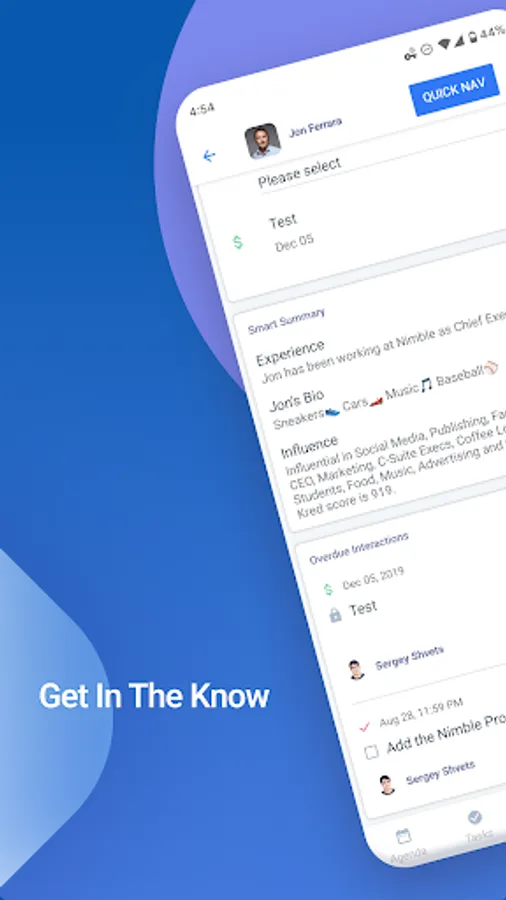 The Nimble app is the only relationship manager and personal Agenda Tool you need. It combines your phone’s contacts and calendars with our rich people and company insights. Before every meeting, Nimble presents you with clear and concise contact and company details. Imagine, no more last minute scrambling before every meeting. Our Nimble mobile app will even help you to effectively follow up and follow through with your contacts via automated reminders to log notes and tasks.