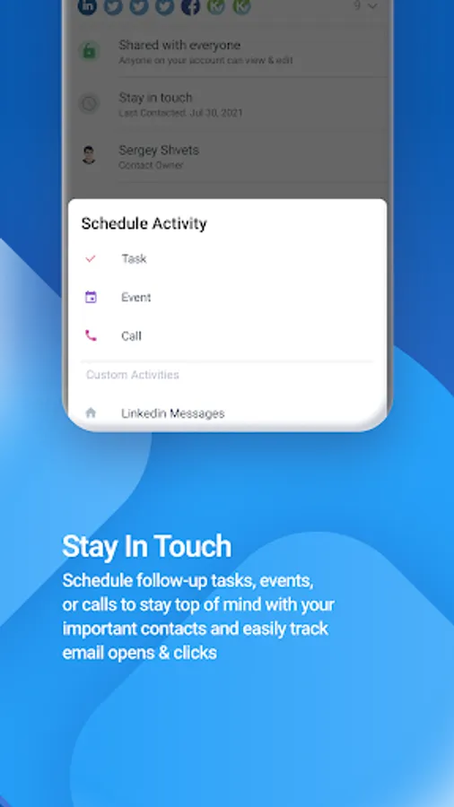 * Get instant intel on your contacts within your CRM and phone book with social and company insights.