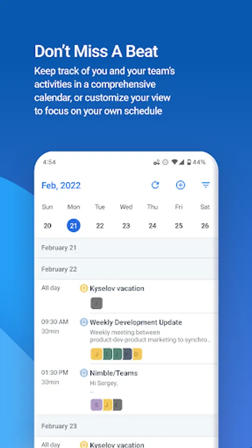 * Quickly create Events that sync to Nimble and your Google Calendar.