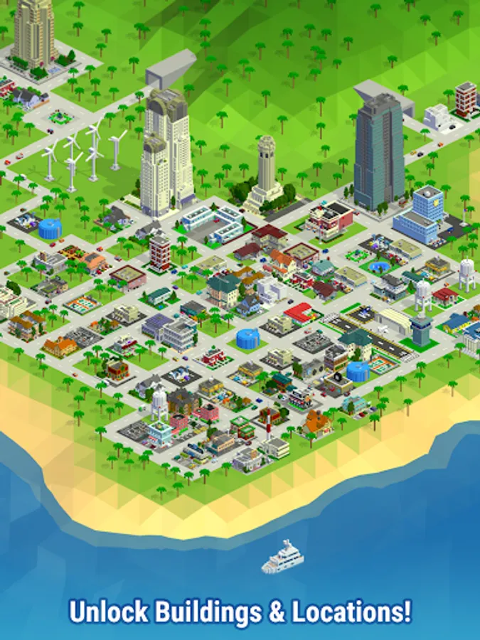Build your Bit City and make your citizens happy! Start from a tiny town and grow to a thriving metropolis in the idle building game from the creators of Tiny Tower. Collect profits and invest in upgrades that keep your city growing. Fill your city with new types of cars, planes and ships. Unlock new buildings, including famous landmarks, to design the look of your city.