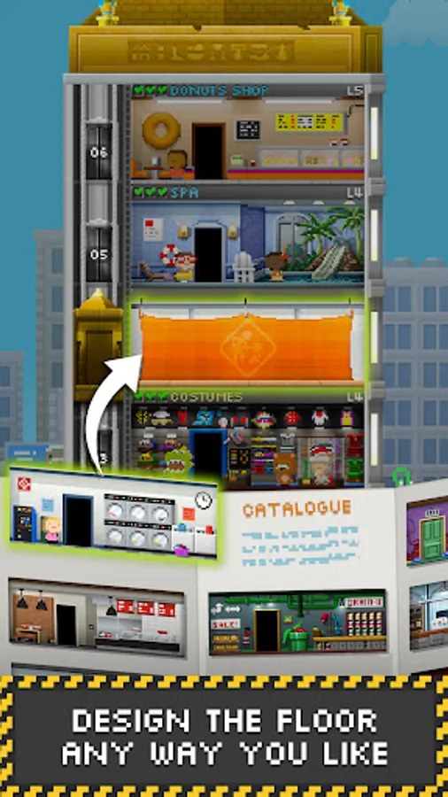 This one and only idle building simulation lets you build different floors and manage businesses and bitizens that inhabit it.