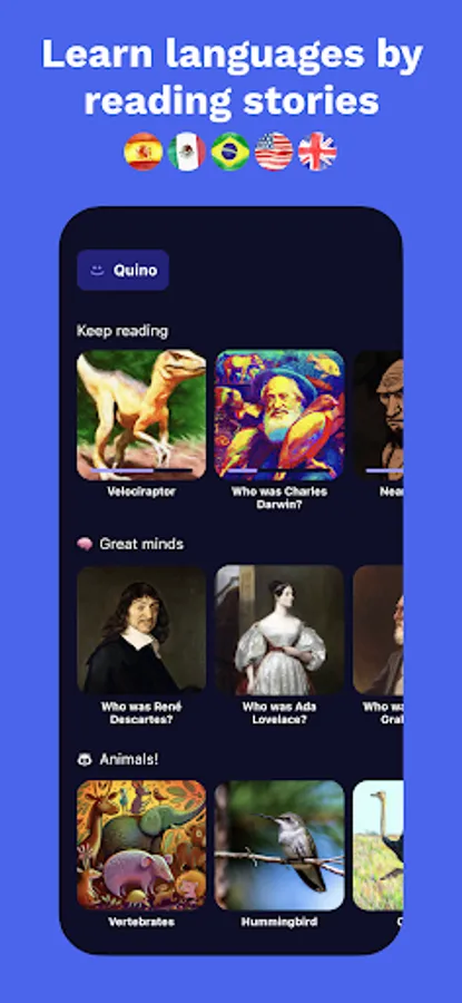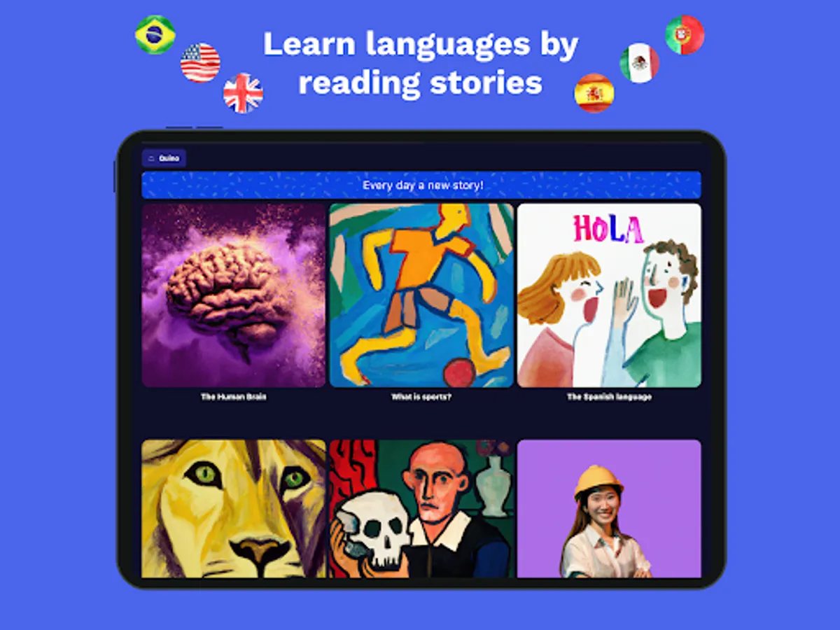 Introducing Nimblo! This innovative app helps children learn Spanish, English, or Portuguese through engaging stories that are narrated, illustrated, and accompanied by a built-in dictionary.