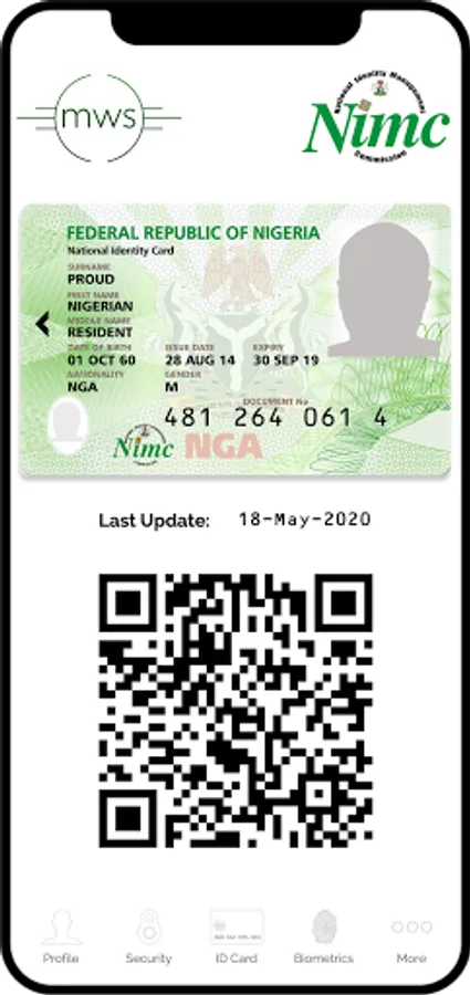 This MobileID is a valid means of identity anywhere within the Federal Republic of Nigeria, alongside the physical National ID Card, your Passport, Driver's license and/or Voter's ID Card.
