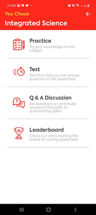In the App, a user can take a Practice or a Test. A user can submit his/her test result to the leaderboard to compete with other users in a particular subject.
